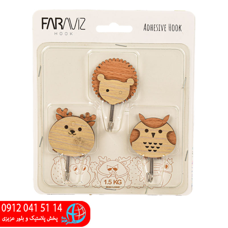 قلاب چسبونک حيوانات چوبي ۳عددي