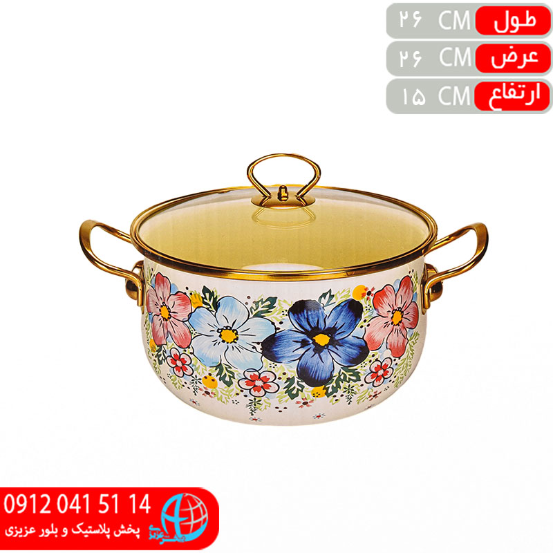 قابلمه گلدار ۲۶ درب شیشه دور طلایی