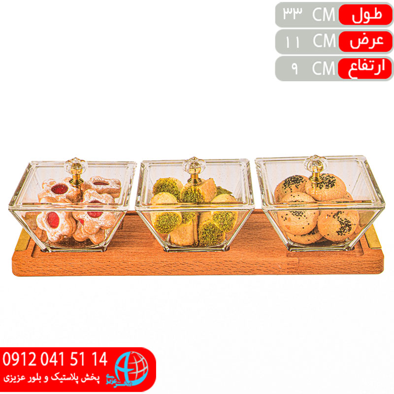 اردوخوری پایه چوبی مربع ۳ خانه لیمون