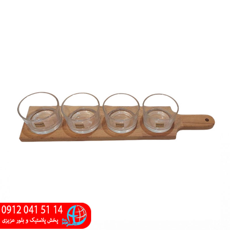 اردوخوری پایه چوبی گرد لیمون ۴عددی